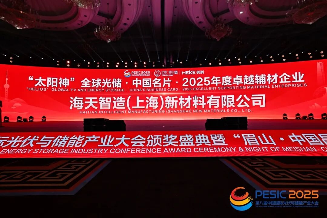 在刚刚落幕的2025第八届中国国际光伏与储能产业大会上, 海天股份 以“首席合作伙伴”的身份深度参与这一全球顶级行业盛会,不仅彰显了其作为行业跨界者的责任与担当,更凭借卓越的综合实力一举斩获“太阳神”2025年度卓越辅材企业与大会“全球合作伙伴&卓越企业奖”两项重磅殊荣,“海天力量”正澎湃而来!