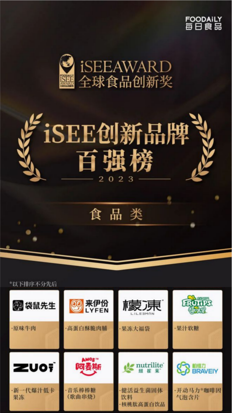 作为食品行业备受认可、规模最大的综合专业奖项,本次评选活动,自去年11月报名开启后,共吸引了900+品牌、2985件参奖案例的踊跃报名。体量之大情况下,来伊份“高蛋白酥脆肉脯”仍能凭借其实力从60多个细分品类中脱颖而出,荣获《iSEE全球食品创新奖》食品类百强产品奖项。