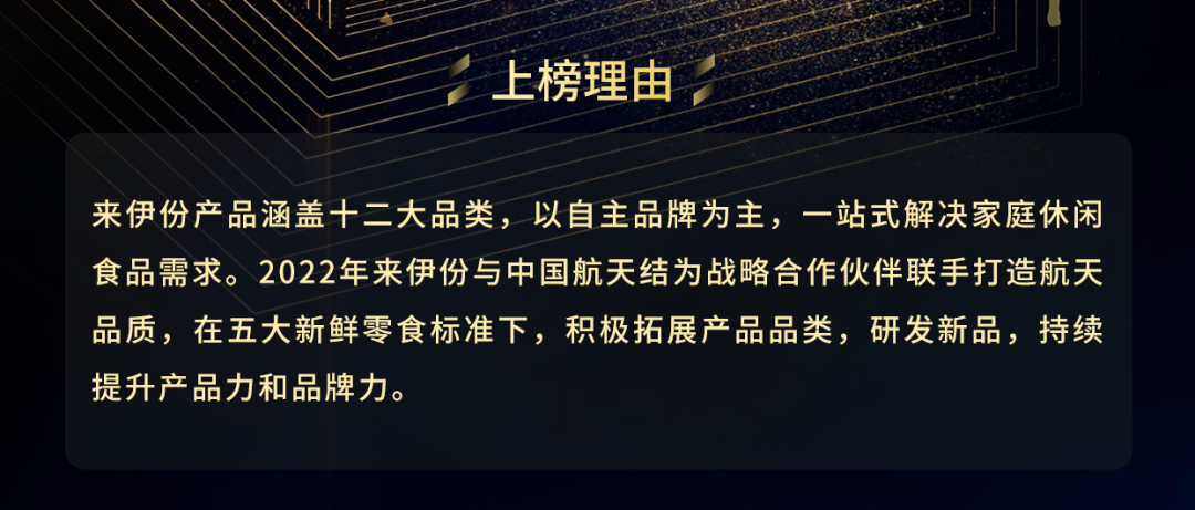 2022年,新鲜零食来伊份作为国内休闲食品行业中特色鲜明的数字化科技能力强势品牌,在过去一年中于商品力和数字化体系建设下的全域经营战略更是表现不俗,从而成为高效全域数字经营的佼佼者和标杆企业。