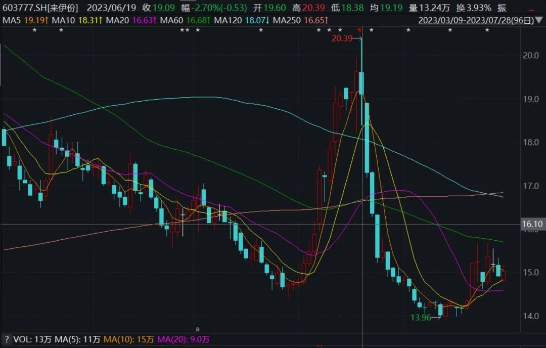 只不过,这个所谓的“ChatGPT概念股”含金量有多高,投资者心中自有评判。自6月19日起,来伊份股价迅速回落。截至7月12日,来伊份盘中最低跌至13.96元,创今年以来股价新低。