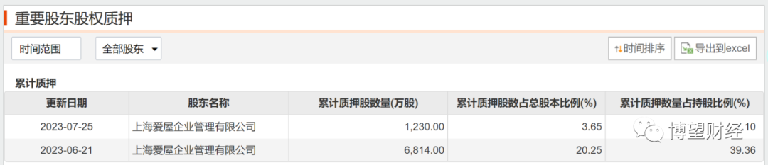 控股股东所持股份近四成处于质押,亦引发股价恐慌。6月20日,来伊份股价跌幅达9.43%;6月21日,来伊份股价下跌5.44%,报收于16.35元。好在一个月后危险解除,截至7月25日,爱屋企管累计质押股数占总股本比例为3.65%,累计质押数量占持股比例下降到了7.10%。
