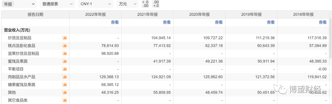 梳理来伊份的业务结构,由于零食类企业SKU数量繁多,体现在报表上则以炒货及豆制品、糕点及膨化食品、坚果炒货及豆制品、蜜饯及果蔬、肉制品及水产品和其他几个大类。在“主力军”面前,咖啡业务显然要归类于“其他”这个选项。