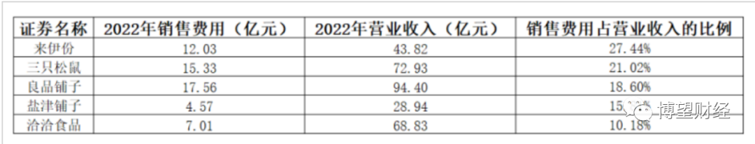 2023年5月,来伊份2023年第一季度业绩说明会上就有投资者提问为何来伊份的销售费用占营收比例高于同行。对此,来伊份表示:“部分友商与公司销售渠道总体差异较大,因而销售费用结构不同;与部分友商相比,公司线下直营门店占比的不同、销售区域的不同等因素,使得相互之间并不具备可比性。”