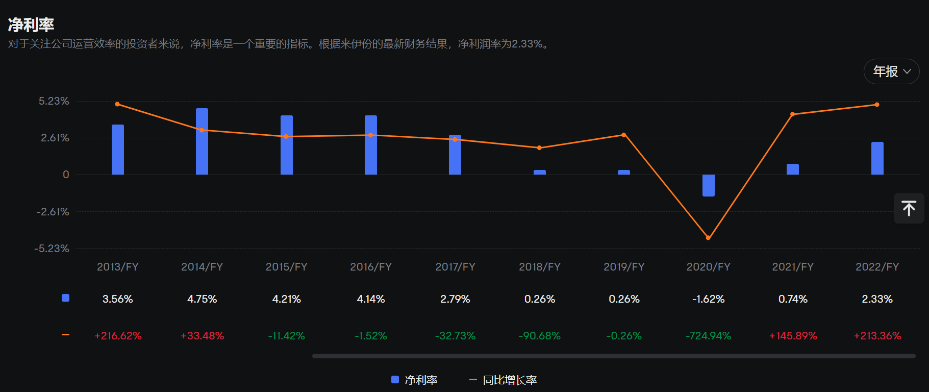 最后,更让市场担忧的是近年来来伊份的盈利能力不足。要知道一家上市企业是否具有长期投资价值,盈利能力是投资者考量的核心。据计算,2019-2022年来伊份平均净利润率仅有0.42%,而良品铺子和三只松鼠的平均利润率分别为3.38%、2.85%。
