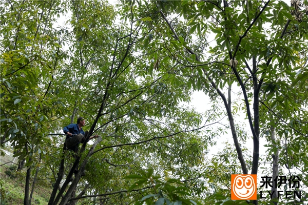 天目山脉悠悠绵延数百里,奇珍异果不计其数,而南麓的浙江临安出众的水文条件为小核桃的生长带来了得天独厚的环境,由于生长在大山深处,所以全靠当地的果农上山上树用最原始长竹竿去“敲核桃”,再用地网“一网打尽”用小推车一袋袋地往山下搬,山路陡峭,所以在收获着这些集天地之灵气的果子的时候也常常伴随着风险。