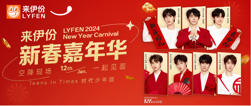 据悉,来伊份新春嘉年华将在2024年1月12日正式启幕,不仅有多个新春气氛打卡装置以及互动游戏,还会有全新的神秘周边重磅亮相。当然,最值得期待的要属品牌方特邀形象代言人时代少年团现身现场。