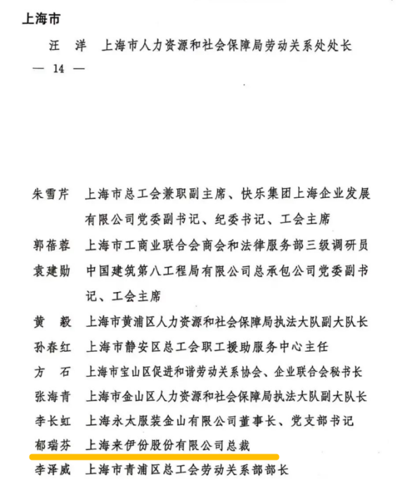 其中,上海来伊份股份有限公司总裁郁瑞芬获先进个人称号。
