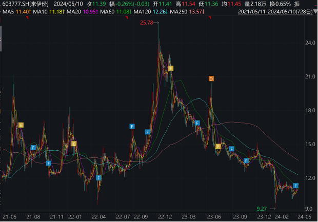 不过,在这十家公司中不乏在2023年遭遇瓶颈的企业,来伊份(603777.SH)便是其中之一。公司收入在2023年出现了上市以来首次同比下滑。