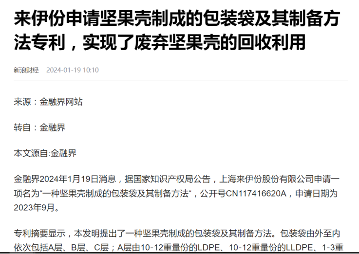 来伊份方面表示,2023年度共计优化升级了26款产品的包装设计,此举有效减少了32,200公斤的塑料使用,进而实现了177吨碳排放的显著缩减。同时,通过积极践行环保理念,采用了17,142公斤的可回收塑料,额外降低了59.9吨的碳排放量。此外,该公司在材料创新领域已取得了显著突破,成功将坚果壳进行回收再利用,并转化为独特的包装材料。此项创新举措的实施,不仅成功降低了5%的塑料使用量,而且由坚果壳制成的包装袋已正式投入市场使用,进一步彰显了来伊份在环保领域的积极贡献与持续努力。