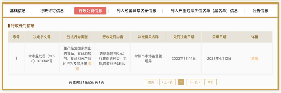 此外,来伊份的个别门店还曾在2023年遭到过行政处罚,2023年3月14日,苏州来伊份食品有限公司常熟梅李大润发店,收到常熟市市场监督管理局的行政处罚。