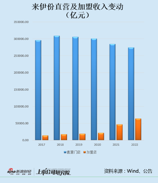 早在2017年左右来伊份的直营门店就陷入停滞状态,门店数量增长无法带动收入增长。2017年左右公司提出“万家灯火”计划,计划加大加盟店拓展,以此驱动增长。