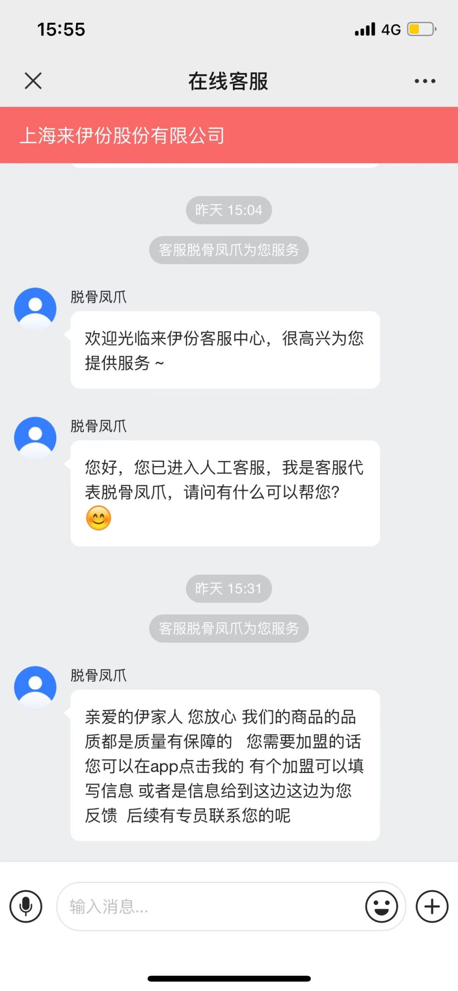 对于商品质量问题,该招商人士说:“零食品种较多、出货量较大,货品是从工厂直接配送到来伊份总仓再进行抽检,过程中可能会有异物,但概率极低。如果出现质量问题,可以联系来伊份品牌方进行售后。目前,没有出现什么食品安全问题,网上的消息会被放大。”她直言,企业不是靠卖货赚钱的。
