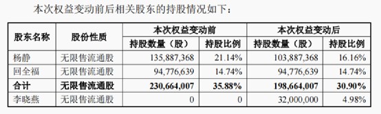 上述两次股份转让,杨静、回全福夫妇合计持股比例从35.88%降至27.90%,获得转让价款合计1.75亿元。