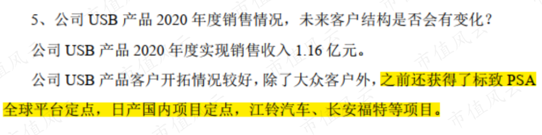 风云君推测大概率是由车载USB产品带来的。根据科博达在接受投资者调研时的回复: