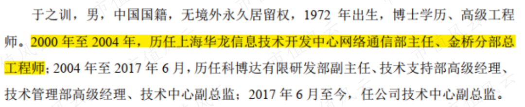 同年,华龙信息网络通信部主任、金桥分布总工程师于之训加入科博达,并成为公司的核心技术人员里面的NO.1。
