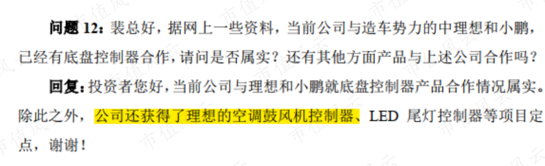 在接受调研时,科博达也明确表示,能源管理系统是正在培育的产品线,短期并不是主要增长点和赢利点。