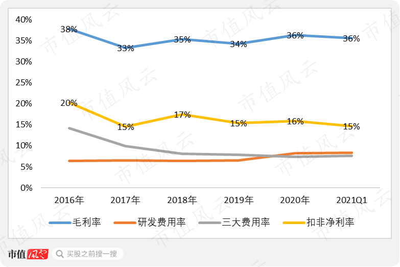 毛利率波动是影响科博达盈利能力的核心因素,2016年至2021一季度,科博达毛利率先降后升,但总体相对稳定。