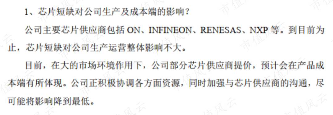 按照科博达说法是影响不大,但在全球汽车产业缺芯以至于要缩减产能的2021年,风云君觉得这个数据值得持续追踪数据。