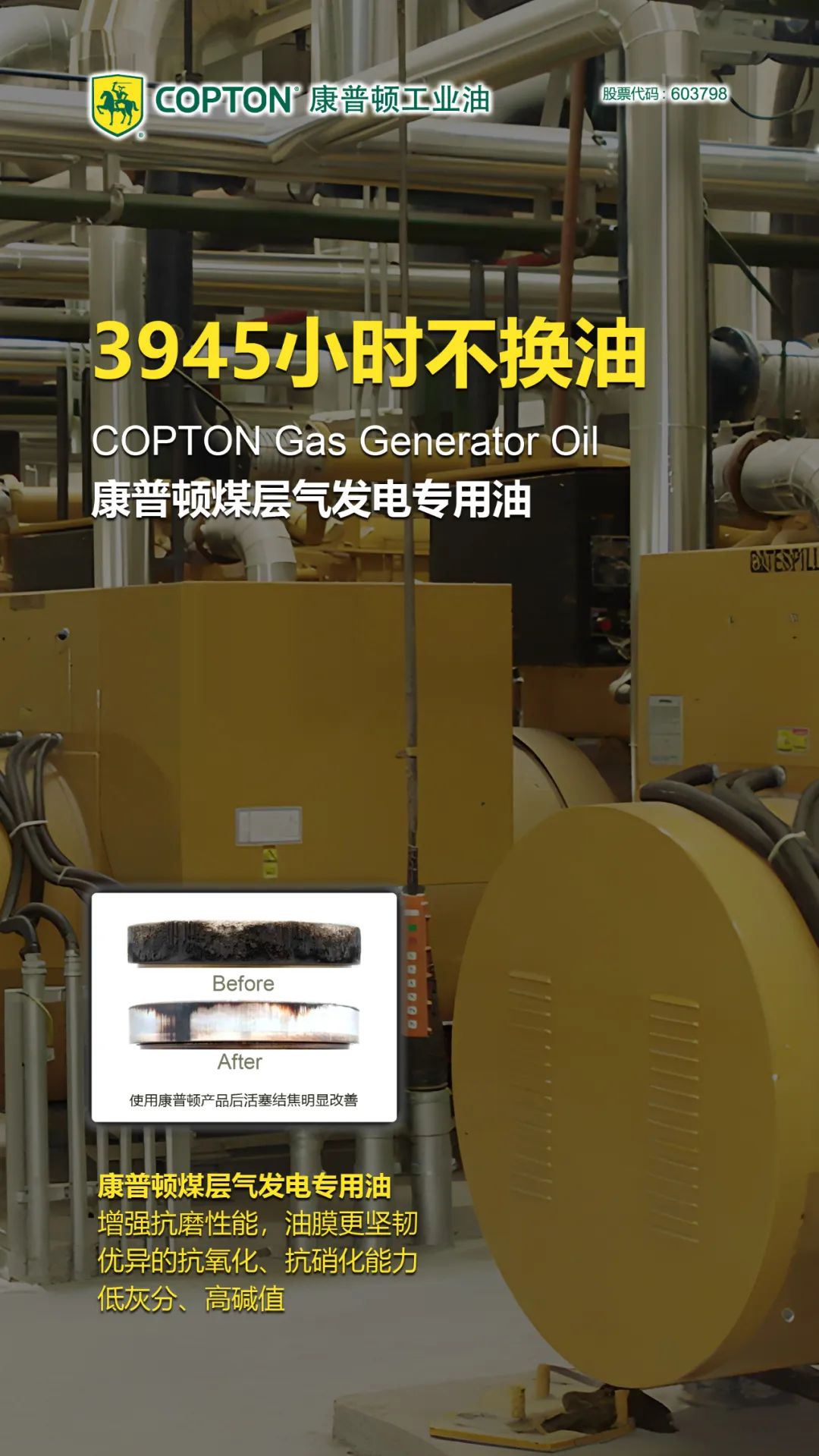 康普顿近年来在煤层气发电领域有诸多应用突破,在固定式燃气发动机设备厂家胜动机械、伊达能机械均实现装机配套,成为其装机专用油;在全国的诸多煤层气发电厂一直有大量应用,并且针对固定式燃气发动机和煤层气气源的特点,提供高碱值储备,重新调配低灰分配方,有效解决了原煤层气发电厂使用市场上的同类产品时出现的结焦情况,更好的的保护发电设备,减少设备维修保养,延长设备使用寿命。此次康普顿推出的煤层气发电专用油在配方上继续优化,针对目前煤层气发电企业减补后的运营压力,推出“长换油”煤层气发电专用油,目前在山西兰能小西煤层气发电厂实际应用中最长换油周期可达3945小时,极大降低了电厂的运营成本。继续以产品创新,为客户创造价值。