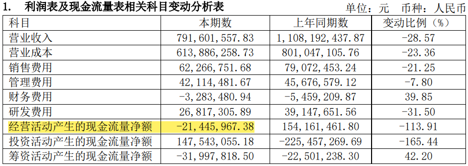 记者从康普顿获悉,2022年经营活动现金流量净额为负,是受原材料成本上涨,采购费用支付与客户回款周期产生差异所导致的。但是进入2023年,康普顿在经营方面的压力也并未减轻。