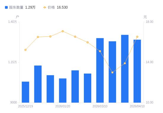 近一年(2025年4月10日至2026年4月10日),康普顿A股股东户数从1.5万户,减低至1.29万户,降幅14.00%,区间股价上涨105.85%。