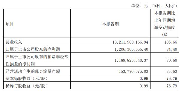 4月28日,华友钴业发布2022年第一季度报告称,公司Q1实现营业收入132.12亿元,同比增长105.66%;归属于上市公司股东的净利润12.06亿元,同比增长84.40%;扣除非经常性损益净利润11.90亿元,同比增长80.60%。