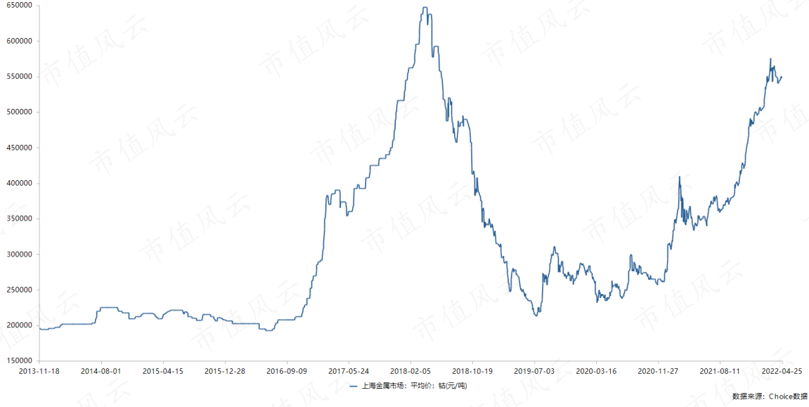 如钴价在2017年和2018年处于高位,2019年和2020年处于低位,2021年又重回高位。