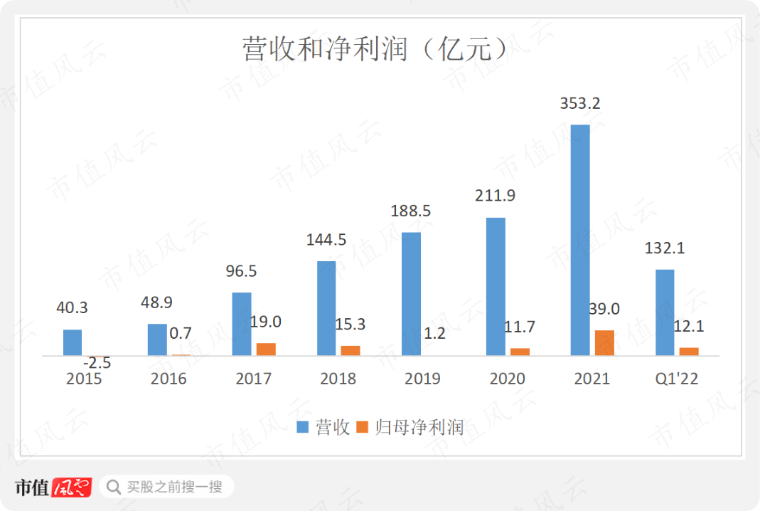公司2021年业绩很惊艳,实现营收和归母净利润353.2亿和39.0亿,分别同比增长67%和235%,这也是公司2015年上市以来的最好业绩。