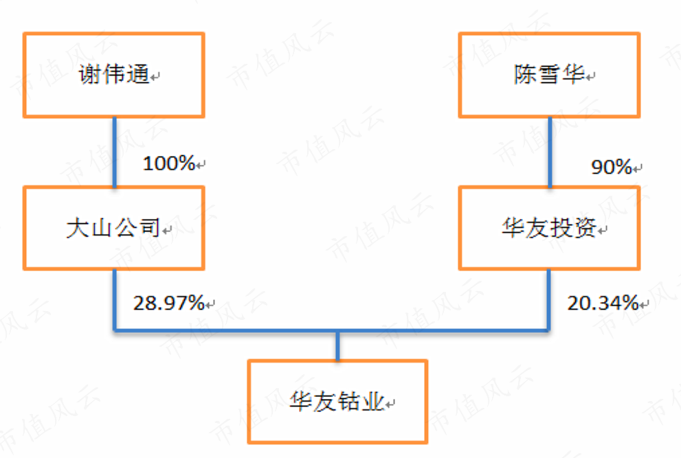 上市之初,谢伟通100%控制的大山公司持有公司28.97%的股份,陈雪华持股90%的华友投资((后更名为华友控股))持有公司20.34%的股份,谢伟通和陈雪华同为公司的实控人。