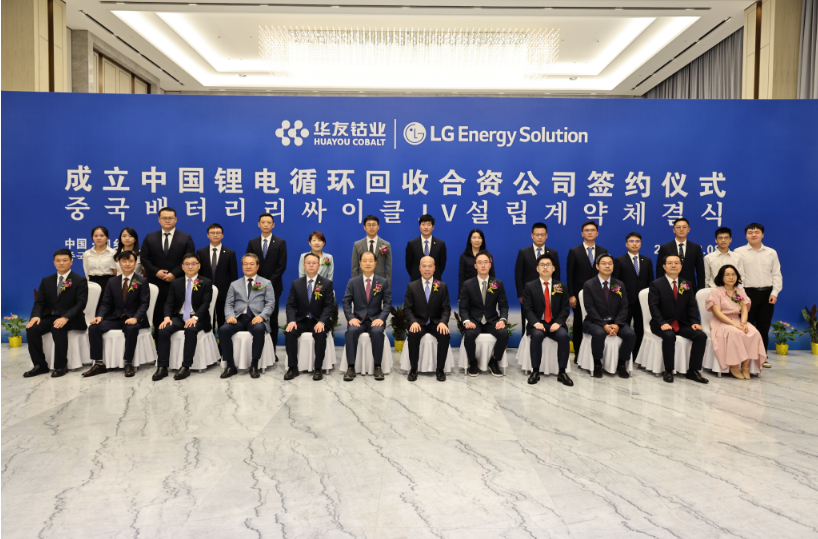 为持续打造锂电池全生命周期闭环体系,加强产业链上下游紧密协同,2023年8月8日,华友钴业旗下浙江华友循环科技有限公司(以下简称“华友循环”)、衢州华友资源再生科技有限公司与韩国LG集团旗下LG新能源正式签署合资协议,分别在南京、衢州两地成立预处理和再生冶金两家合资公司。