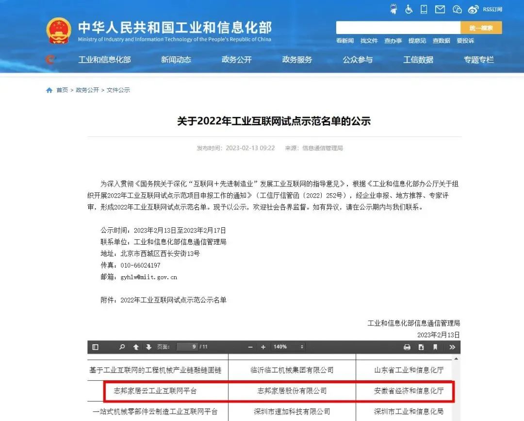 今年2月,志邦家居云工业互联网平台被评为【国家工业互联网试点示范】项目;2022年志邦家居还曾作为安徽合肥“数字化”转型企业代表,登陆央视1套/13套《朝闻天下》。