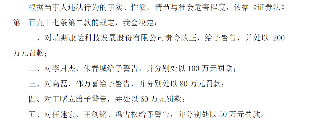 近日,瑞斯康达(603803.SH)收到中国证监会下发的《行政处罚决定书》,因参与“专网通信业务”,公司被证监会责令改正、给予警告,并处以200万元罚款。同时,公司创始股东、董事、总经理李月杰等8人各自被处以罚款。