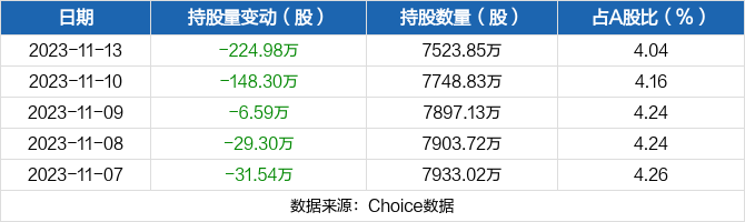 11月13日,福斯特被沪股通减持224.98万股,已连续5日被沪股通减持,共计440.72万股,最新持股量为7523.85万股,占公司A股总股本的4.04%。