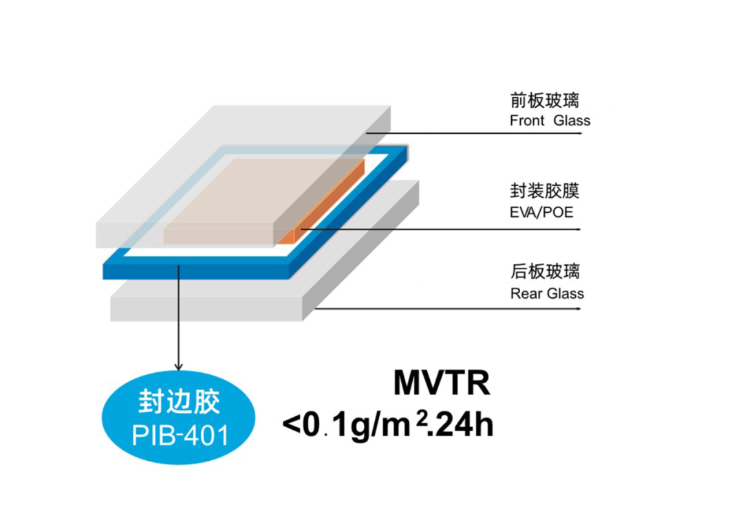 福斯特PIB系列封边胶,具备超低的水汽透过率(水蒸气透过率 0.1g/m2?24h),良好的粘结性、耐热性和长期耐候性能,并与EVA、POE具有良好的兼容性。用于HJT组件的边缘密封和接线盒孔位密封,具有长效阻隔功能和优异的绝缘性。双玻组件使用PIB封边胶搭配双EVA转光膜,经DH3000老化后功率衰减 3%。福斯特零水透PIB封边胶已广泛应用于HJT、钙钛矿电池组件的高可靠性封装中,获得多家HJT、钙钛矿头部组件公司的认可。