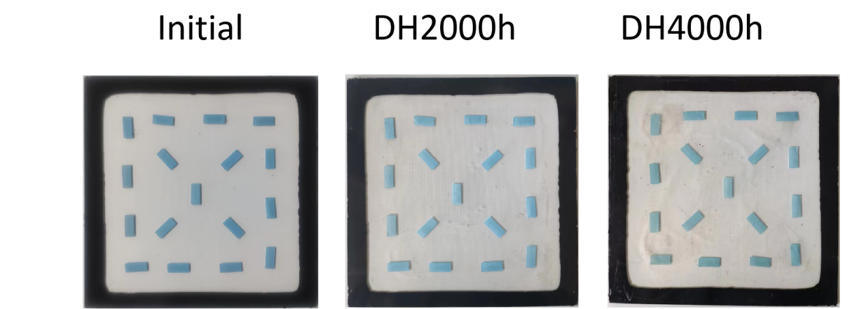 图5.高温高湿条件下PIB封边样品水汽渗透情况氯化钴试纸变色情况