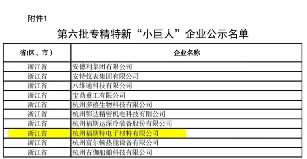 近期,为深入贯彻习近平总书记关于“培育一批‘专精特新’中小企业”的重要指示精神,工信部开展了第六批专精特新“小巨人”企业培育和第三批专精特新“小巨人”企业复核工作,已完成相关审核程序,福斯特控股子公司杭州福斯特电子材料有限公司荣获评浙江省第六批专精特新“小巨人”企业称号。