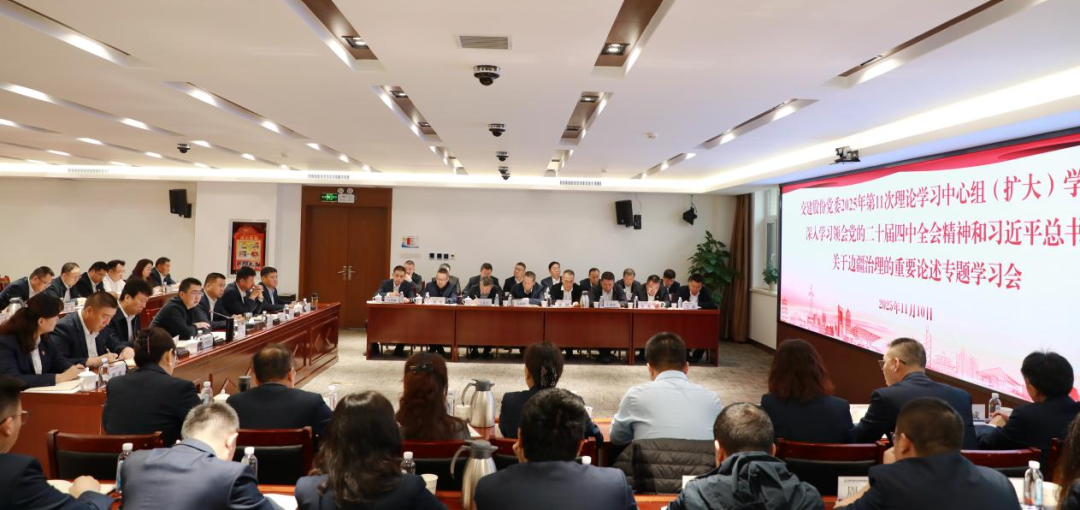 11月10日,交建股份党委召开2025年第11次理论学习中心组(扩大)学习会,会上学习了党的二十届四中全会精神,习近平总书记在中共中央召开的党外人士座谈会上的重要讲话,习近平总书记主持二十届中共中央政治局第二十二次集体学习时的重要讲话,习近平总书记关于边疆治理的重要论述,《习近平谈治国理政》第五卷等内容。交建股份党委书记、董事长王彤主持会议并作讲话。