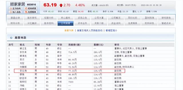 据东方财富网显示,目前李云海持有公司77.33万股份,薪酬为116万元,和其余6位副总裁的薪酬相差不大。