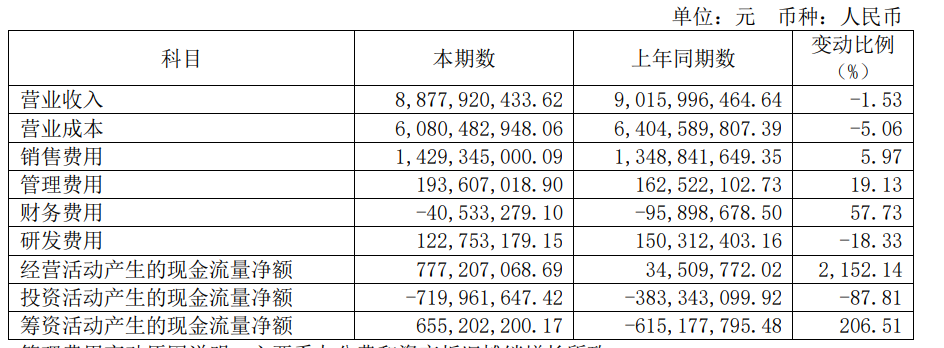 2023年上半年,顾家家居营业收入88.78亿元,同比降1.53%;归属于上市公司股东的净利润9.24亿元,同比增3.67%;归属于上市公司股东的扣除非经常性损益的净利润8.38亿元,同比增7.27%。