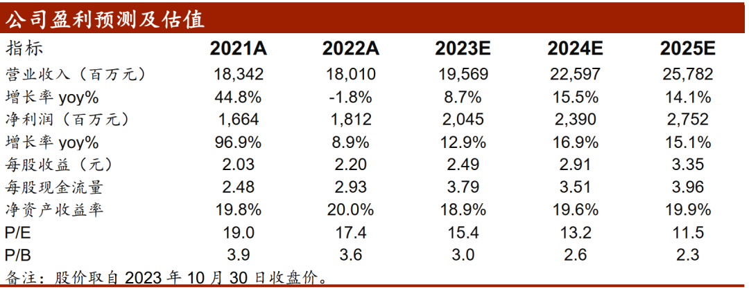 投资建议:顾家家居是国内软体家居龙头,产品、品牌、渠道护城河深,伴随公司渠道结构升级及高潜品类放量,业绩修复可期。我们预计公司2023-2025年有望实现收入195.7、226、257.8亿元,分别同比增长8.7%、15.5%、14.1%,实现归母净利润20.45、23.9、27.52亿元,分别同比增长12.9%、16.9%、15.1%(考虑下游需求调整盈利预测,2023-2024年前次预测值为20.7、24.1亿元),EPS为2.49、2.91、3.35元,维持“买入”评级。
