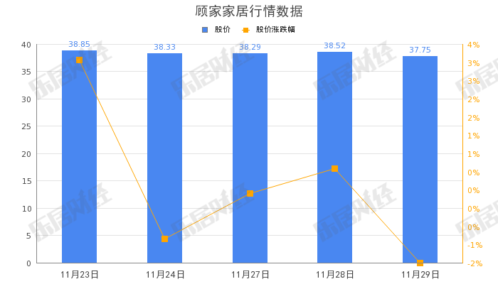 截至11月29日,顾家家居(603816.SH)股价收盘报38.52元,跌2%,总市值310.26亿元。