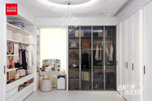 衣帽间是女性的梦想,但传统衣柜功能单一,收纳和美观无法兼顾。顾家整家定制的大女主衣帽间,通过衣柜只挂不叠、包包礼服展示区、一体床头柜等模块,为女性打造了一个兼具收纳与展示功能的衣帽间。在最佳光线下展示包包、礼服,不仅满足了女性对美的追求,还让衣帽间成为个人品位的延伸和生活仪式感的载体。