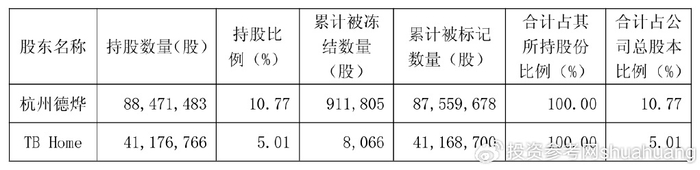 11月6日晚间,顾家家居(603816)一份股份冻结公告在资本市场引发热议。这家市值 250.4 亿元的家居巨头披露,持股 10.77%的股东杭州德烨嘉俊企业管理有限公司(前身为顾家集团),因 4.34 亿元债权纠纷,所持 8847.15 万股股份被河北省衡水市中级人民法院轮候冻结,冻结起始日为 11 月 5 日。更值得关注的是,另一持股 5.01%的股东 TB Home Limited 所持 4117.68 万股股份同样处于全额冻结状态,两大股东合计 15.78%的公司总股本被彻底锁定。