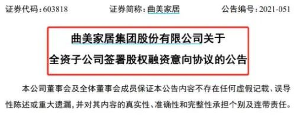 新浪定制频道讯12月29日晚间,曲美家居发布《关于全资子公司签署股权融资意向协议的公告》。公告称,公司就全资子公司Qumei Runto S.àr.l.股权融资事项与珠海高瓴德祐投资管理有限公司和银梯咨询顾问(北京)有限公司分别签署了《曲美家居战略合作之投资意向书》。具体来看,高瓴投资和银梯咨询拟以向Qumei Runto增资或受让老股的方式分别投资 2 亿元人民币和 2500万美元。