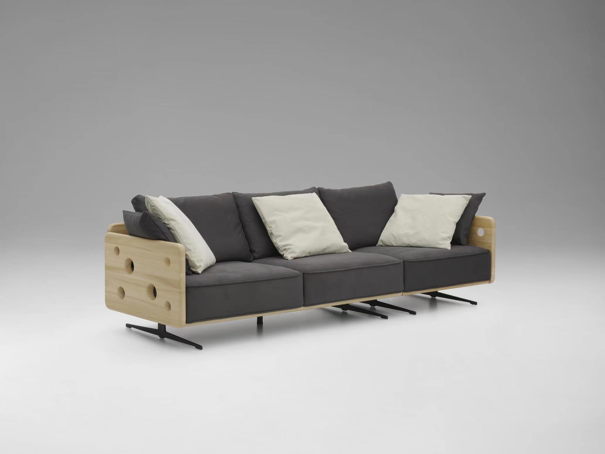不同于市面上常见家具繁复的工艺和材质堆叠,集木系列则用简单的方式表达真挚的情感,拥有一种返璞归真的力量。比如,沙发的扶手、椅子的靠背、餐桌的台面都被原木包围,呈现出一种自然、未经雕饰的美感;产品的比例协调、线条凝练、自然流畅,内敛的设计让人能感悟生活之美。