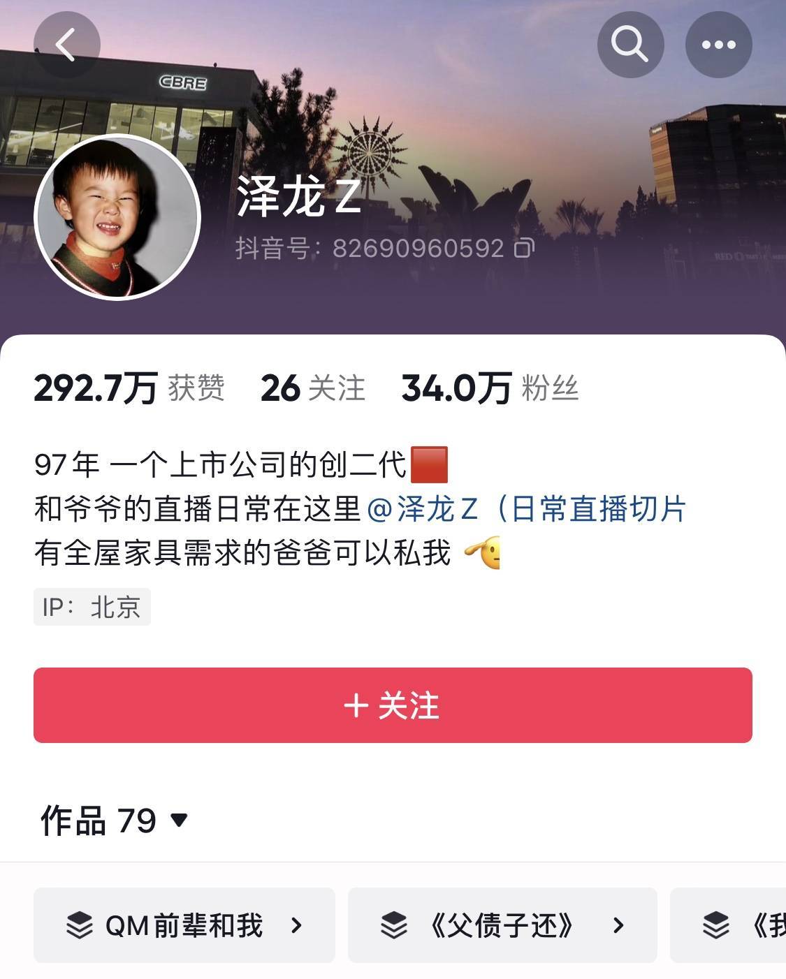 面对业绩压力,曲美家居开始尝试新的营销方式,其中最为引人注目的就是打造创始人IP。去年,公司董事长赵瑞海之子赵泽龙留学归来后,开始在抖音平台上发布短视频,并开设合集“《父债子偿》”,甚至邀请其父赵瑞海一同出镜。截至今年1月27日中午,赵泽龙的抖音账号已经发布了79个作品,虽然大部分作品的点赞量不高,但最高点赞量已近60万。