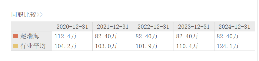 曲美家居董事长、总经理为赵瑞海。东方财富数据显示,2021年至2024年,赵瑞海薪酬均为82.4万元。