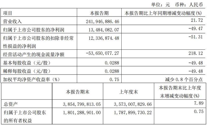 坤彩科技发布的2023年一季度业绩报告显示:今年一季度,公司实现主营收入2.42亿元,同比上升21.72%;归母净利润1348.41万元,同比下降49.47%;扣非净利润1233.69万元,同比下降51.31%;负债率52.98%,投资收益1.69万元,财务费用1240.03万元,毛利率27.94%。