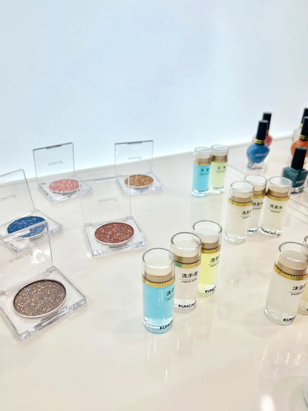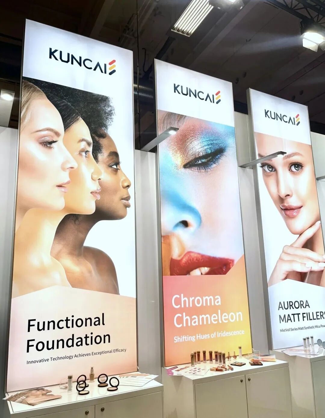 展会现场,坤彩科技特设了“沉浸式试妆区”。与传统原料展商单纯提供粉末样本不同,坤彩直接带来了由化妆品应用中心打造的成品样版。