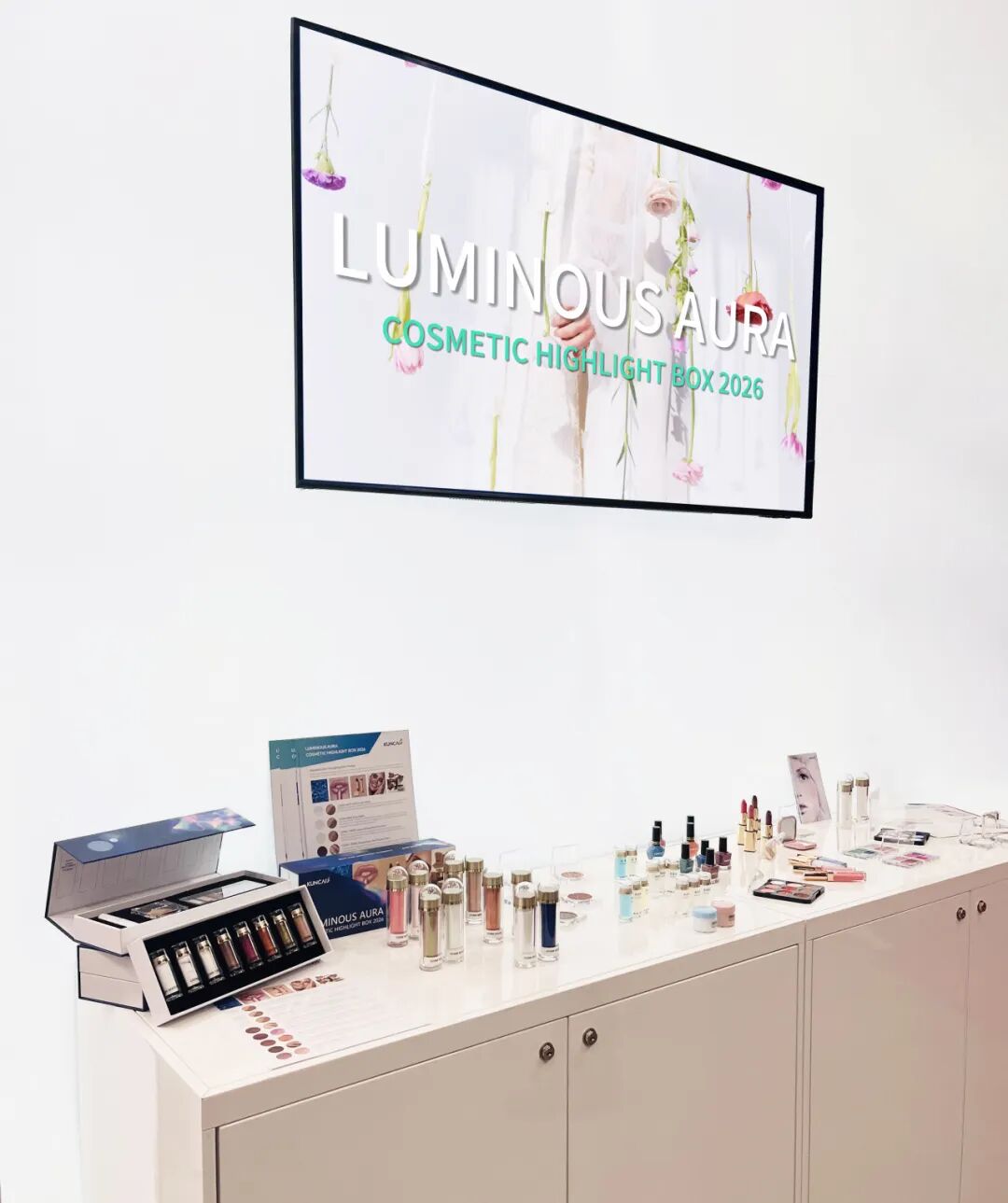 针对欧洲高端彩妆市场,坤彩带来了全新的细粒径变色龙珠光系列。该系列彻底告别了传统珠光的颗粒砂感,呈现出如丝绸般顺滑的液态金属流动感。现场发布的 「2027全球趋势色彩」 ,基于AI大数据与消费心理洞察,为国际品牌提供了下一季的美学灵感密码。